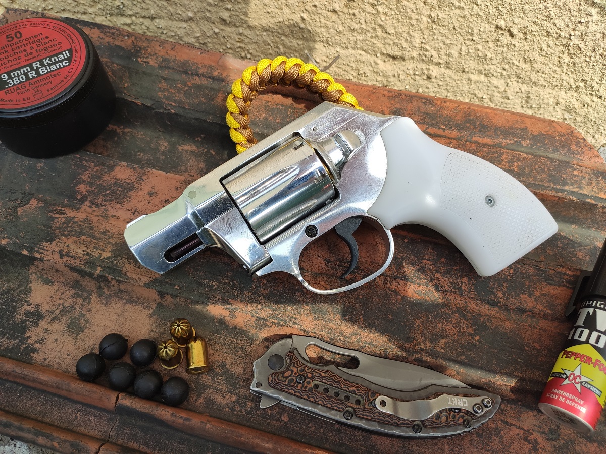 A sütés kifejezetten lágy volt tesztfegyverünkön, talán túlzottan is, mert kb. 50-60 leadott lövésre esett 2 db elcsettenés is, igaz mindkettő másodikra elsült. Egyebekben kifogástalanul működött a pillekönnyű jószág, mely működésében azért azonos a többi Pitbullal, a dobot egyben kell kivenni és abba gumilövedéket (12 mm) szemből bezsírozva kell betölteni, a 9 mm R Knall riasztópatront (Geco) pedig hátulról. Ezzel a torkolati energia kb. 50-60 joule, bármi egyebet betöltve a fegyver és a lövő sérülése benne van a pakliban. Hatásos lőtávolsága a gázgumis kategóriának megfelelően kb. 3-5 méter, mi 8 méterről is kipróbáltuk, nagyjából az a határ az, ahol még mellkason belül vannak a lövések. Kritika még, hogy az irányzék kicsi és a fényes alu nézőke és célgömb nehezen rendezhetőek.
