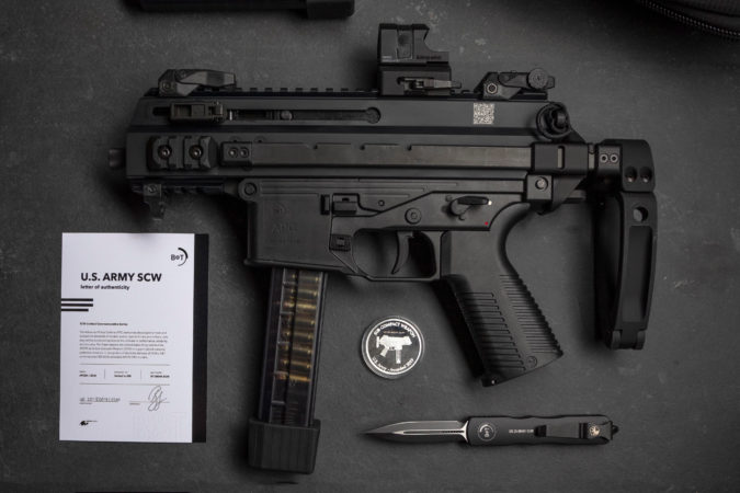 A svájci B+T meglepetésre tavaly megnyerte az USA fegyveres erőinek Sub Compact Weapon (SCW) tenderét, ami egy nagyon rövid csövű, kompakt 9 mm Luger géppisztoly a személyvédelmi feladatot ellátó speciális egységek számára. Az első 333 darabos tételt már le is szállították, és ennek emléket állítandó egy Limited Commemorative Edition-t bocsátottak ki 350 példányban a civil piacra. Ezek természetesen csak félautomata fegyverek, sorozatlövő fődarabok nélkül, de formailag tökéletesen ugyanaz, mint a hadifegyver, azzal kivétellel, hogy ezek az USA-ban jogilag pisztolyok (APC9K), nincs válltámaszuk, csak kihúzható kartámaszuk.