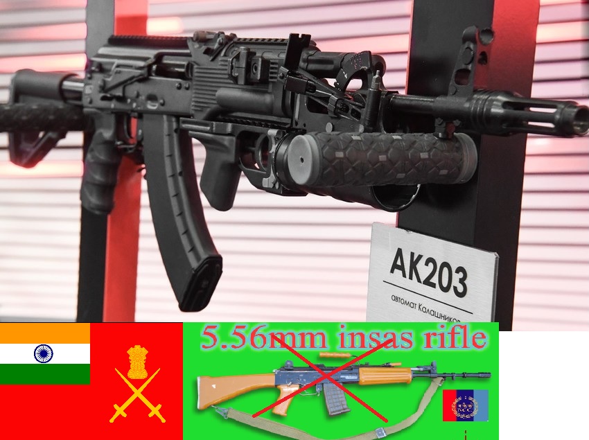 A jövő hónapra esedékes indiai Putyin-látogatás elé időzítve ügy tűnik végre dűlőre jutnak az indiai hadsereg lövészfegyver-cseréjét illetően. Az évek óta (2018) húzódó orosz-indiai megállapodás alapján 671 millió dolláros keretszerződést kötnek egy vegyesvállalat létrehozására, melynek 50,5%-az Indian Ordnance Factory Board (OFB), míg az orosz Kalasnyikov Konszern és a Roszoboronexport 42 és 7,5% tulajdonrésszel rendelkezik. Ez a közös cég fogja létrehozni azt a gyárat Uttar Pradesh állam Amethi körzetében. , mely 750 ezer darab AK-203 7,62×39 mm-es kalasnyikov gépkarabélyt készít orosz licence alapján a helyi hadseregnek. (Ez a fegyver alapvetően egy kismértékben modernizált lemeztokos AKM, sok szereléksínnel, betolható válltámasszal, ergonomikus pisztolymarkolattal, de például csak egykezes biztosító-tűznem váltóval és felhúzókarral.). Az első 70 ezer darab AK-203 azonban még Izsevszkből fog érkezni.