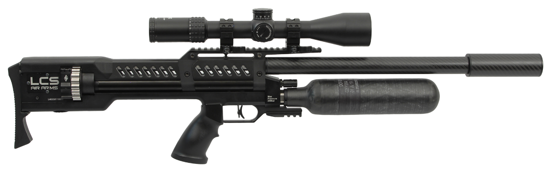 Az amerikai LCS Air Arms új, bullpup elrendezésű, forgótáras, sorozatlövő légfegyvert mutatott be, melynek elméleti tűzgyorsasága 360 lövés/perc. Az SK-19 .22 (5,5 mm) és .25 (6,35 mm) kaliberben készül, tárkapacitása 19 db lövedék, az energiaellátást sűrített levegős palack (480 cm3) biztosítja, mely kb. 100-110 lövés leadására alkalmas kb. azonos energiával.