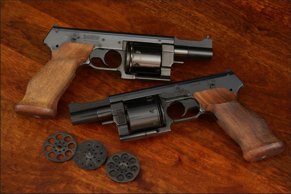 Az 1980-as első felében tervezte az olasz Emilio Ghisoni a Mateba revolvereket. Nemrég ezek közül néhánynak a gyártását felújította egy kis olasz cég, most pedig az MTR8 revolver következik. A revolver 8-lövetű, .38 Special kaliberű, töltő/dobforgató tárcsás megoldású, a dob pedig a markolat előtt-alatt (a lövő csuklóját nem nagyon éri felfele csavaró nyomaték) helyezkedik el. A cső csupán 75 mm hosszú, ennek ellenére pontlövő sportrevolverként árulják, anatómiai famarkolattal. Az 1250 gramm üres tömegű, teljesen acélépítésű revolver ára kis szériás gyártása okán brutálisan magas, 3000 euró.