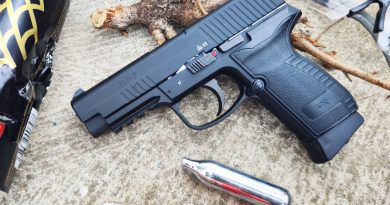 Ennél a feladatnál mindenki visszacsöppenhetett egy kicsit a gyerekkorába. A csapat mindhárom tagja kapott egy-egy Slavia 630-as légpuskát, és azzal két perc alatt 5 lövést kellett leadnunk a 10 méterre kitett körös lőlapra, álló helyzetből. Mivel minden feladatot teljes felszerelésben kellett megoldani, viccesen hatott, hogy karácsonyfának öltözött emberek pisztollyal az oldalukon, géppisztollyal a nyakukban mégis egy légpuskával pötyögtetnek. Egy apró észrevételem azért volna: a golyóálló mellény nem kompatibilis a Slavia válltámaszával.