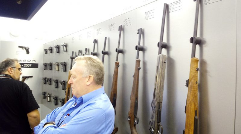 A gyárlátogatás után beengedtek bennünk a Grey Room-ba, azaz abba a szobába, ahol a szinte összes fontos itt gyártott fegyvert, azok prototípusait őrzik. Itt lehetett csattogtatni (!!!) az első CZ75-öt, meg az 1 milliomodikat…és most tartanak kb. 1,6 milliónál.