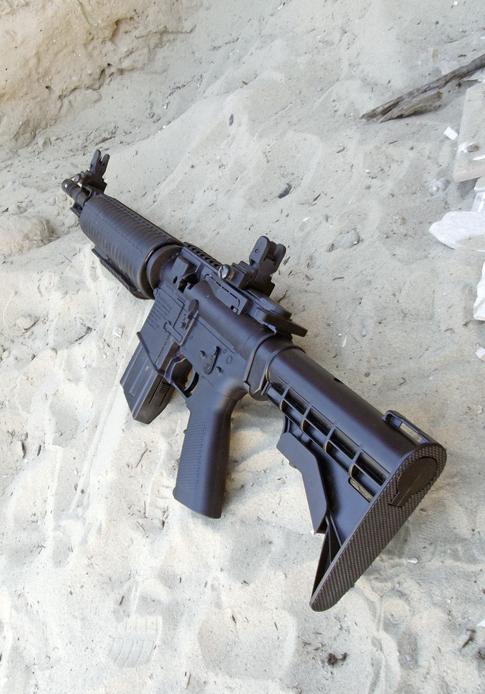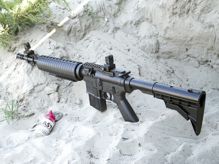 A Crosman M4-177 esetében a válltámasz örömteli módon ugyanúgy, több fokozatban állítható a hosszát tekintve, mint a felnőtt M4-esen. Ami itt felettébb praktikus, mert így gyerekkézben is használható. Ezt segíti a rengeteg műanyag okán igencsak csekély saját tömeg is, mely mindössze 1530 gramm.