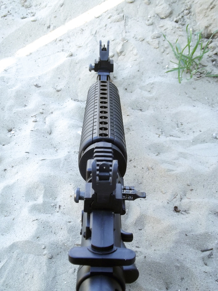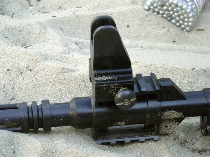 A valódihoz hasonlóak a szabványos méretű szereléksínek is, melyeket nem csak a tok tetején, de az előágy alján és a célgömb alatt is megtalálunk. Ide bátran lehet céltávcsövet vagy red dotot, esetleg fegyverlámpát applikálni, mivel nincs hátrarúgás, nincs rezonancia, nincs ami lerázná őket.