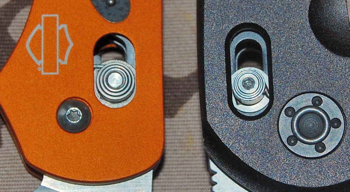 Van némi különbség az eredeti Axis zárhoz képest: a Ganzo megoldásán amellett, hogy (sajnos) jóval erősebb rugót alkalmaztak, a rugók formája is eltér az eredetitől. (Nem omega alakúak, mint a Benchmade Axis-on, hanem ? az Enlan és SRM-féle megoldáshoz hasonlóan – félkörben meghajlított, 0,8 mm vastag acélrugókat alkalmaznak.) Nyilván egyszerűbb így gyártani, viszont emiatt sajnos keményebben jár a záróelem is. (Némi gépészeti jártassággal azért lehetne ezen az állapoton javítani: a rugóknak az alappaneleken új rögzítő furatokat lehetne kialakítani 2-3 mm-rel odébb – persze a rozsdaálló acél csak jó minőségű fúró segítségével munkálható meg.) Pozitívum volt az eddig látott kínai Axis-másolatokhoz képest, hogy a szemölcsök hengeres kialakítása végre nem szedi szét az ujjbegyeket. Koszra kevéssé érzékeny a zár, a nyitott kialakítású szerkezetnek köszönhetően nem igazán tudná elakasztani a szennyeződés. Maga a záróelem rendkívül stabilan rögzíti a pengét, a javítás után extrém erőhatásokra sem oldott ki véletlenül ? gyengébb rugót alkalmazva nem is lenne szükséges nagy erő az oldásához. Sajnos azonban a G701 zárrugói még mindig túl kemények az eredetihez képest…