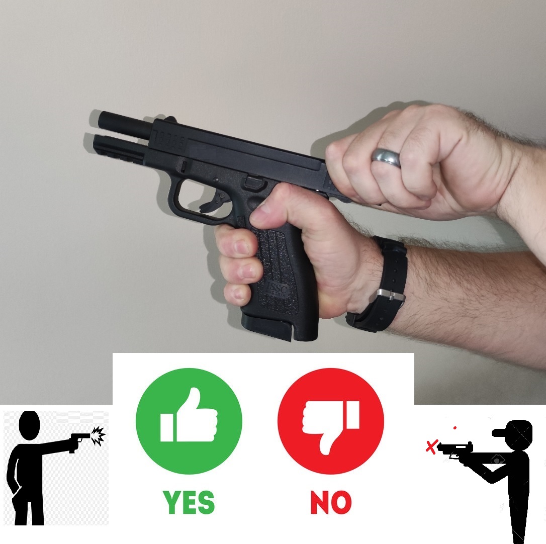 4. a gázpisztolyok jelentős része, ha csőretöltve viselhető is, NEM “drop-safe”, azaz magasról kemény felületre pl. betonra ejtve elsülHET, ha például kakasra/szán hátuljára érkezik (pl. Zoraki 914, Umarex Walther PPQ). Ezt azonban most nem vizsgáljuk, hiszen az 1. pontban feltételeztünk egy jó tokot!!!