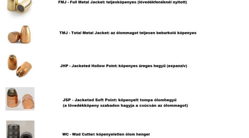 Gyakoribb maroklőfegyver-LÖVEDÉKfajták és rövidítéseik (A teljesség igénye nélkül!)
