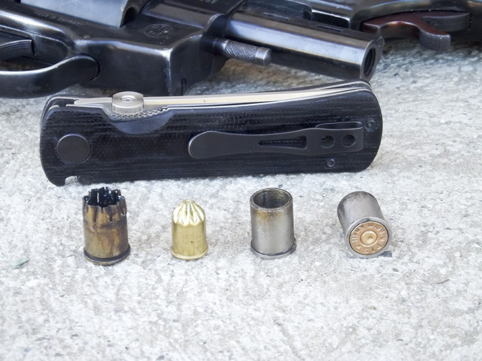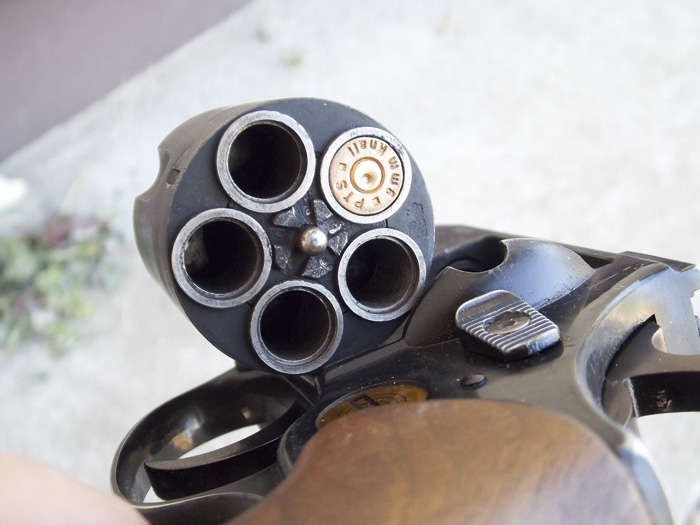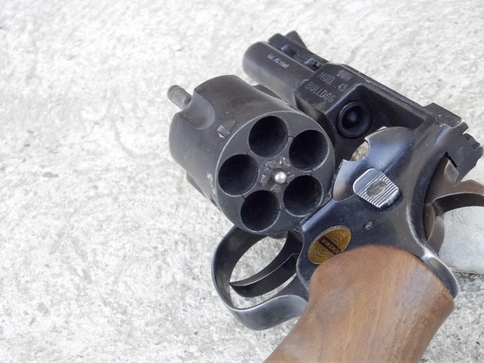 A normál hatlövetű 9 mm-es revolverdob helyén levő ugyanakkora .45-ös dobba viszont csak eggyel kevesebb patron fért. Tehát a méretes .45-ös revolverekkel nemhogy több, de kevesebb hatóanyagot tudott a nem halálos fegyverrel védekező polgár magával vinni.
