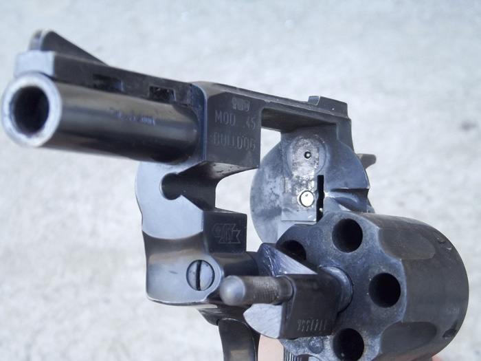 Számomra teljesen érthetetlen módon azonban a szintén kéznél levő, régóta gyártásban levő, hatlövetű .38 Special kaliberű revolvereik valamivel nagyobb tokjára épülő gáz-revolverük nem született a HS 45 Bulldogon kívül.