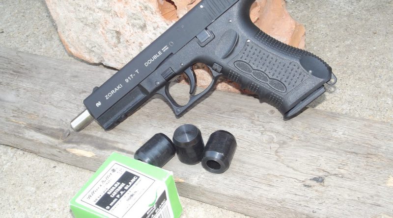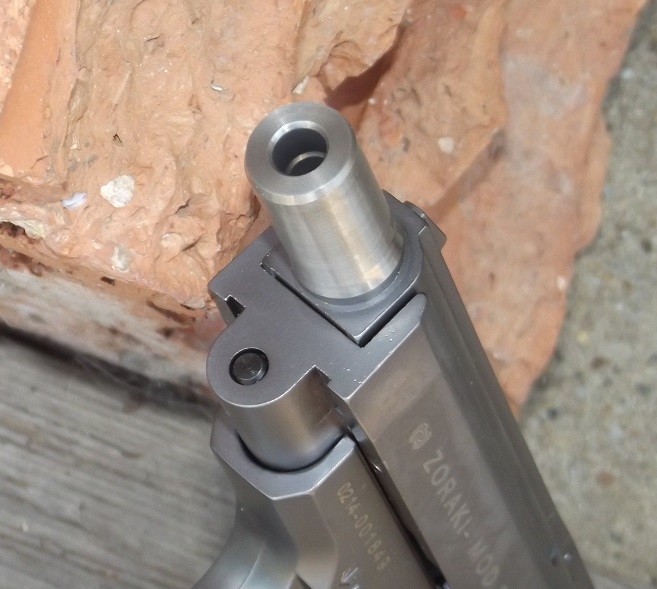 Adódott hát az ötlet, hogy egy valamivel hosszabb menetvédőbe a kb. 6 mm-es kapszulának megfelelő furat kerüljön (előtte pedig némi szűkítés, hogy szemből betöltött ólomlövedék ne lehessen kilőhető). Ezzel tovább növelhető az első lövésre eső kijuttatott hatóanyag mennyisége, illetve lehetséges „vegyes töltet”, ha CS-patronnal küldjük ki a kapszulacin peppertöltetét. Ez ráadásul így öntöltő modellekhez is lehetővé teszi a kapszulacin használatát. További pluszként pedig némi plusz szűkítéssel javítja a megbízhatóságot (ma már például az Umarex számos öntöltő gázpisztoly-modelljébe gyárilag tesz kitekerhető szűkítést).