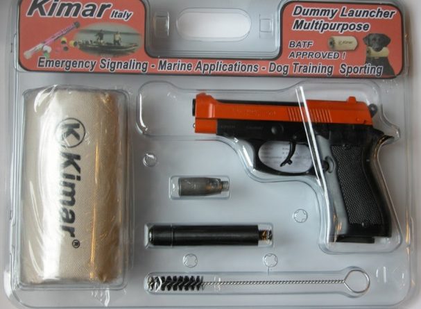 Azonban nem csak toldatBA, hanem toldatRÓL is lehet riasztó kivetőtölténnyel indítani kilövendő dolgokat – ez magyarán az előző megoldás inverze. Erre iskolapélda a Röhm RG96 Rapid Launcher, mely az alap gázpisztoly meghosszabbított csővel és DAO elsütőszerkezettel készült változata. Ezen eszköz egy acélbetétes, kemény habszivacs „dummy”-t lő ki akár 40-50 méterre is, melyet vadászkutyák apportírozásra kiképzésére lehet remekül használni. A Röhm megoldásával ellentétben az olasz Kimar ilyen szerkezete esetében a cső megtoldása nem állandó, hanem lecsavarozható, amúgy az M85 típusra épül – csak, hogy egy másik, itthon is kapható márkára utaljak.