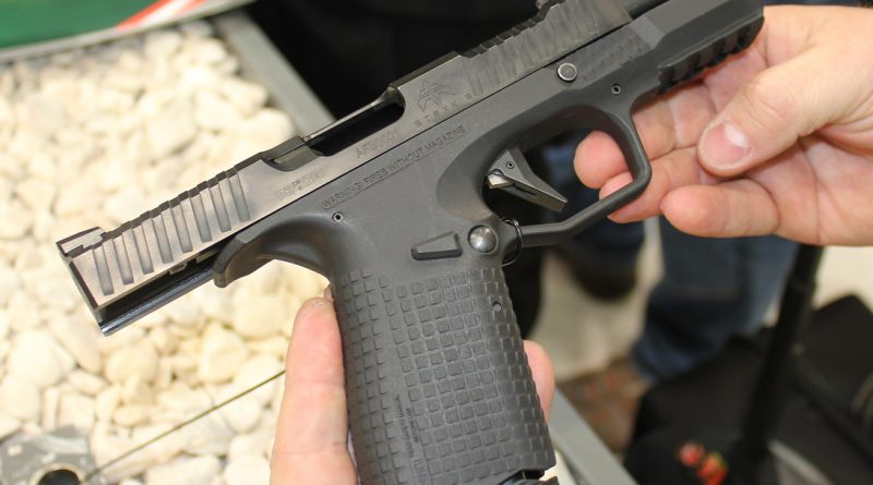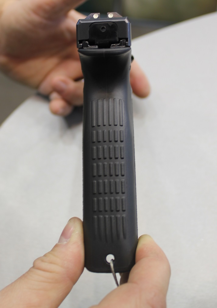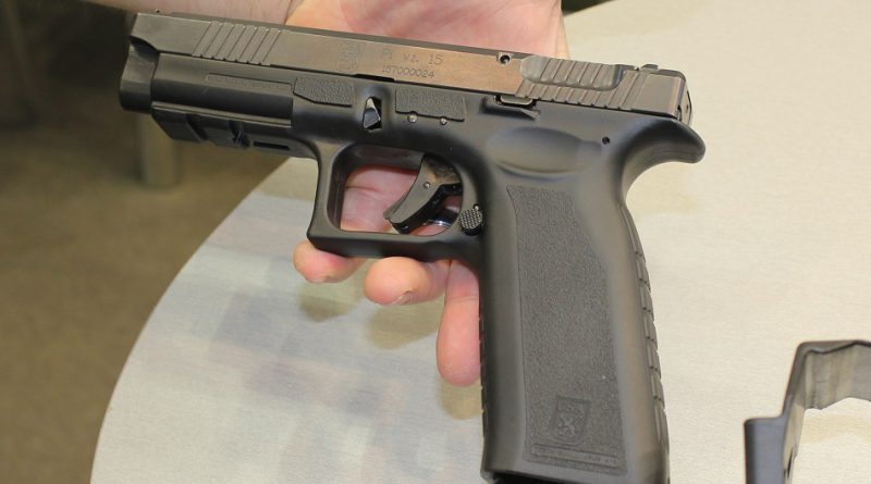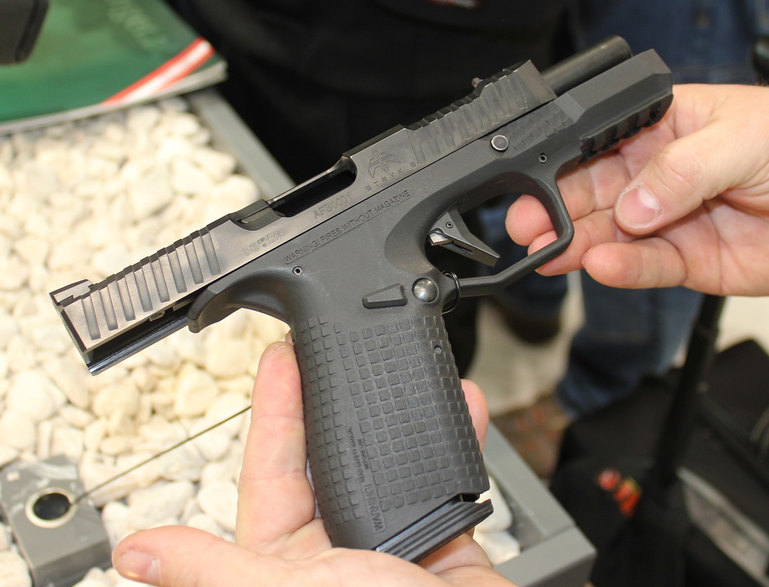 A cseh “Glock Strike One XD”. A semmiből előkerült pisztoly, ijesztően alacsony csőtengellyel, szinte olyan, mintha egy normális pisztoly szánjának felét lefotoshoppolták volna. HS XD tárakkal, és nagyon kis tömeggel is bír – furcsa, hogy nincs a tokban acélbetét, de azt ígérték, hogy olcsó (400 dollár alatt) és tartós is lesz. Meglátjuk.