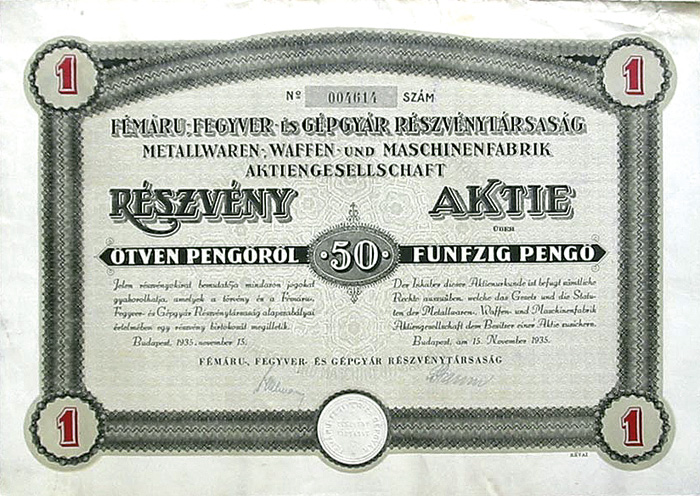 A magyar kormány több kudarccal végződő próbálkozását követően 1891. Februárjában megalakul a Budapesti Fegyver – és Gépgyár Rt. (FÉG). Míg a budapesti kézifegyvergyár alapításának kísérletei folytak, a XIX. század második felében végbemenő ipari forradalom hatására a magyar ipar – közte a hadiipar is – erőteljes fejlődésének indult.