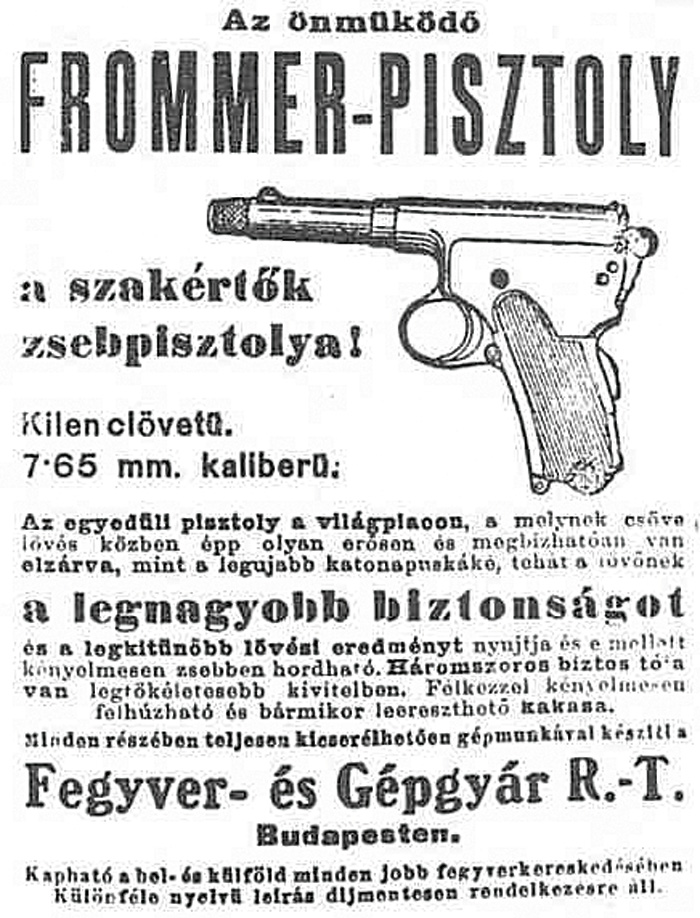 Újra indul a katonai kézifegyverek gyártása, fejlesztése az 1920-ban alapított Danuviában és a budapesti fegyver és gépgyárban. A fejlesztéseket Frommer Rudolf, Király Pál, Gebauer Ferenc neve fémjelzi.