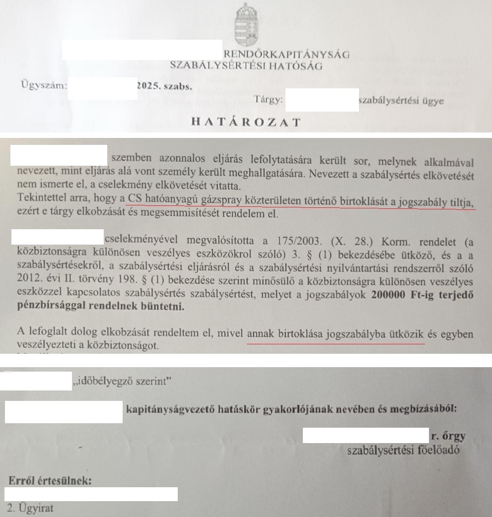 Egy olvasó/vásárló küldte át nekünk a teljes dokumentációt az ellene indult KKVE-témájú szabálysértési eljárásról, ami előtt teljesen értetlenül áll, hiszen pontosan tisztában van vele, hogy a jogszabály betűje szerint bizony semmit sem követett el. Mert őnála pont a legális hatóanyagú, kisméretű gázspray volt, melyet legálisan, üzletből vásárolt.