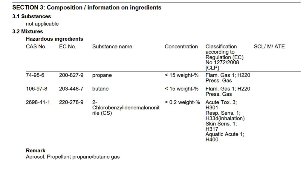 Tehát csak a pelargonsav-vanillilamid és az olajosgyanta-tartalmú kapszaicin hatóanyag tilalmazott, a CS (orto-klór-benzilidén-malononitril, lásd: https://en.wikipedia.org/wiki/CS_gas) pedig nyilvánvalóan egy teljesen másik anyag, így NEM tilalmazott, ezért a lefoglalás/elkobzás és a szabálysértés megállapítása alaptalan.