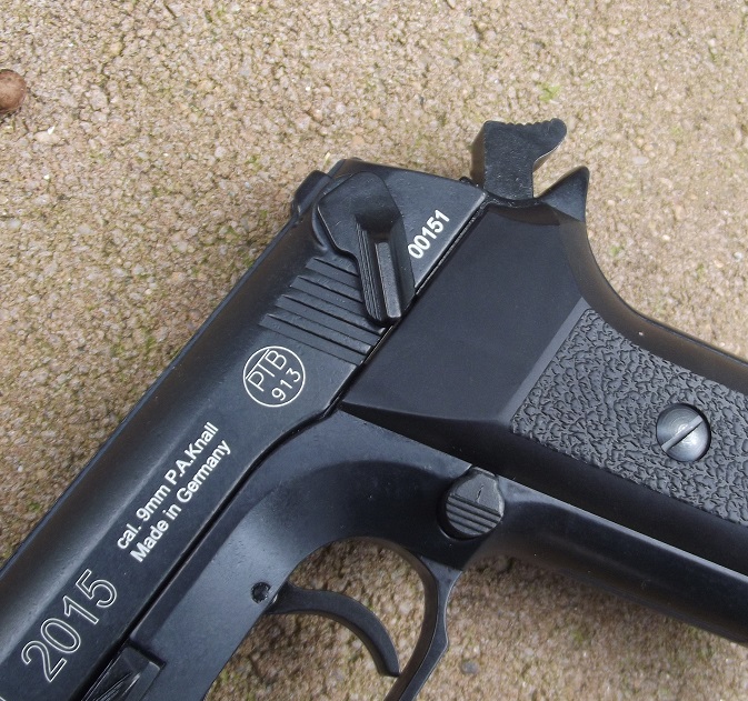 Illetve nem csak gázpisztoly, hiszen a 9 mm PAK gáz-riasztó kivitel mellett létezik 10×22 mm Traumatic kaliberű gumilövedékes, szerelt lőszeres kivitel is. Ez csupán annyiban tér el, hogy a 6 mm-es furatú csőből hiányzik a függőleges akasztólap. Ennek a fegyvernek neve Record Defender lett, és bizonyára a gumis lőszer miatt volt szükség a masszívabb szánra is.