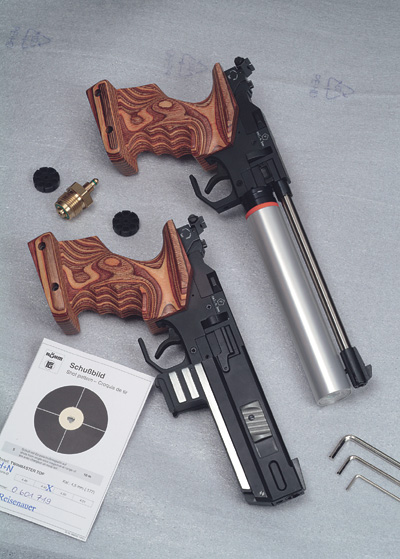 – Trainer: külsőre akár nem is gondolnánk, hogy a családhoz tartozik. Kifejezetten kis- és nagykaliberű ISSF pontlövő versenyszámok gyakorlófegyverének szánták, 6″-es csöve és Pardini sportpisztolyt idéző formája miatt talán ez a leglátványosabb az összes modell közül. Szén-dioxidos működtetésű, műanyagmarkolattal 309 euró, famarkolattal 359-.