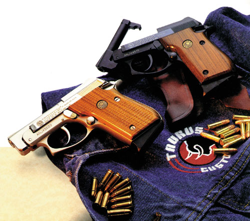 A Taurus ma is gyártott, kompakt méretű öntöltő pisztolyai alapvetően eltérnek a Kaliber 1999/16. számában bemutatott, Beretta M92 utánérzésnek tekinthető pisztolyoktól. Ezek a fegyverek vitathatatlanul a brazil cég piackövető magatartásának a termékei. A világ legnagyobb polgári fegyverpiacán, az USA-ban ugyanis 1995-től polgári célokra nem vásárolhatók 10 db-nál nagyobb kapacitású tárak és az azokkal szerelt fegyverek. Emiatt ? az eredetileg 15+1 lövetű ? PT?92 mérete túl nagynak bizonyult a többi, 10 db-os tárkapacitású pisztolyhoz képest. A Taurus emiatt egy kisebb méretű, a ?Berettás? hagyományokkal szakító modellcsaládot hozott létre. Ezek közt a fegyverek közt megtalálható a .45 ACP kaliberű is, melyet az amerikai vásárlók régóta hiányoltak a Taurus típusválasztékából.