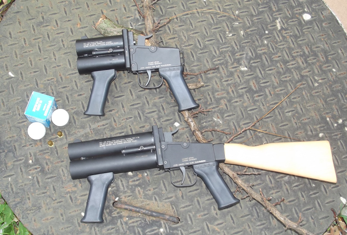 A Rubber Meteorite esetében, hogy ezt a teljesítményt elérjék, a .45 Knall (.45 R Blanc) riasztópatront használják kivetőtölténynek, melyet jelenleg semmilyen más, új gyártású fegyver sem alkalmaz. A fegyver muzeális besorolású, szabadon tartható lakásvédelmi eszköz, anyaga teljesen acél – hátránya, hogy csak kis szériában, megrendelésre készül.