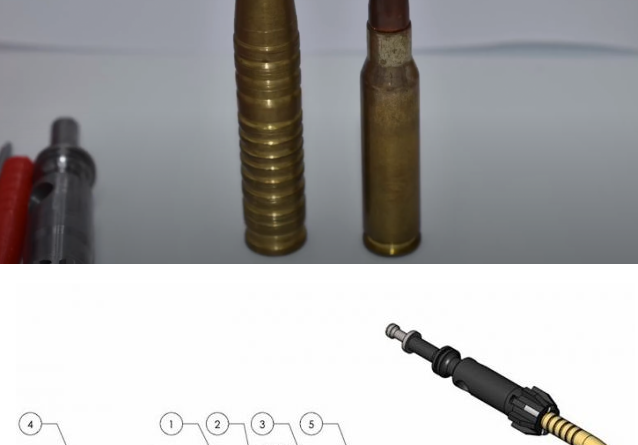 A későbbiekben a rézhüvelybe szilárd tömbként behelyezhető robbanónyagtömb-csappantyúelegy megoldást terveznek. A lövedéktömeg jelenleg 120 grain (kb. 7,8 gramm), kalibere 7,62 mm (.308 SCA). A lőszer/lövedék alsó része hornyolt, hogy a klasszikus hüvelyvonó kihúzhassa a töltényűrből ürítéskor. Ugyanakkor a töltényűrt hátrafele lezáró hüvely hiányában a zárszerkezetnek nagyon jól kell tömítenie, ami az elkoszolódást veszélyét növeli, és az ütőszegfuraton való gázvesztés elkerülésére is speciális öntömítő ütőszegszerkezetre van szükség.