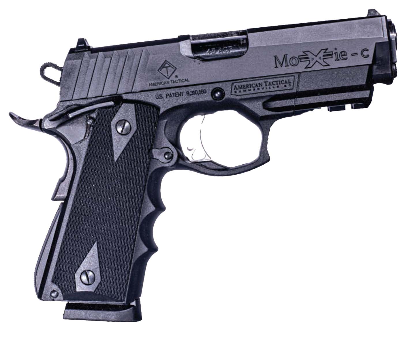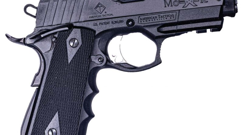 Az American Tactical Imports FXH-45 műanyagtokos M1911-ét pár éve mi is foghattuk a kezünkbe Nürnbergben, 2 éve jöttek ki modernizált verziójával, az FXH-45 Moxie-val, idén pedig bejelentették ennek 4,25″ csőhosszú kompaktabb “Moxie Commander” verzióját. A műanyagtokos pisztoly cserélhető markolatpanelekkel, szereléksínnel és kesztyűs kézben is használható méretű sátorvassal rendelkezik, de egyebekben belül klasszikus M1911 (kengyeles-bordás rövid csőhátrasiklásos reteszelés, csak SA külsőkakasos elsütőszerkezet). Azért azt vicces megfigyelni, hogy a SIG P320 jellegzetes szánformája hogyan jelenik meg itt is…
