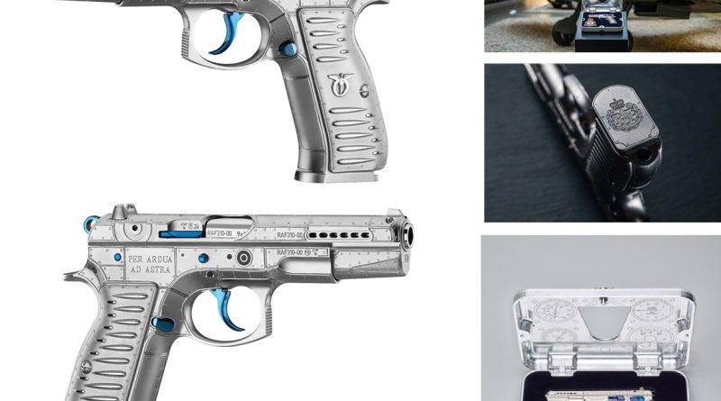 A klasszikus acéltokos 9 mm Luger kaliberű (16+1) CZ75 külső gravírozásai egy Spirfire vadászgép részleteit idézik, a kezelőszervek kék színben tündökölnek, és fel van rajta tüntetve a RAF jelmondata is: Per ardua ad astra – küzdelmen keresztül a csillagokba. A RAF címere pedig a tárfenékre került.