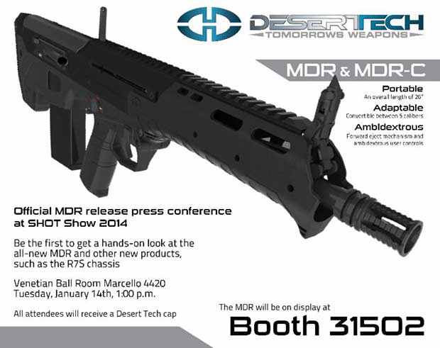 Egy újabb, eddig szinte ismeretlen (jellemzően mesterlövészpuskákkal foglalkozó) amerikai cég mutatott be egy bullpup elrendezésű félautomata puskát. A Desert Tech Micro Dynamic Rifle (MDR) 26″ teljes hossz mellett a jogszabályilag ott kötelező 16″-es csövet kapott, teljesen kétkezes működtetésű, és előre veti ki a töltényhüvelyeket. A multikaliberű platformnak szánt fegyver várhatóan 5,56×45 mm és .300 BLK kaliberekben fog először készülni.