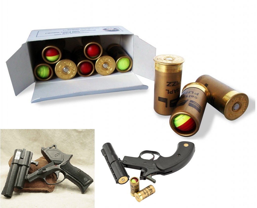 (Megjegyzendő, hogy jobban akasztózott csőből lőve az elporladó pepperball a hagyományos gázpatronok alternatívája is lehetne, a 12/50 pedig CIP-szabványos riasztófegyver-kaliber is egyúttal.)