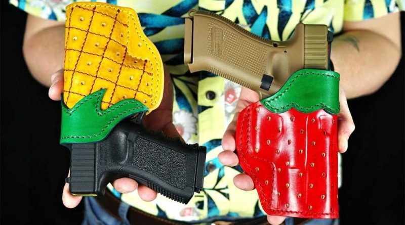 Nos, bizonyára erre a kolosszális fontosságú és valószínűségű eseményre készül a szlovák Falco Holsters CarryArt toksorozatánk két legújabb tagja, CX14 Pineapple és CX15 Strawberry. Mindkettő övön kívül viselendő övtok, anyaga bőr, és a Glock 19/19X modelleken túl 3600 különféle maroklőfegyverhez is elkészítik megrendelésre. Természetesen jobb és balkezes gyümölcs betakarítókra egyaránt számítanak vevőként.