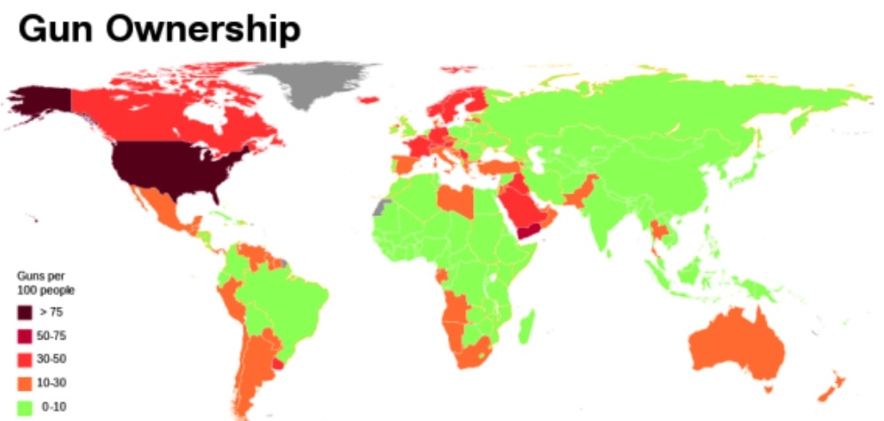 Érdekes kis világtérkép fegyver/lakosság vs. gyilkosság/lakosság összefüggésben (persze valószínűleg nem teljesen pontos adatokra épitve):