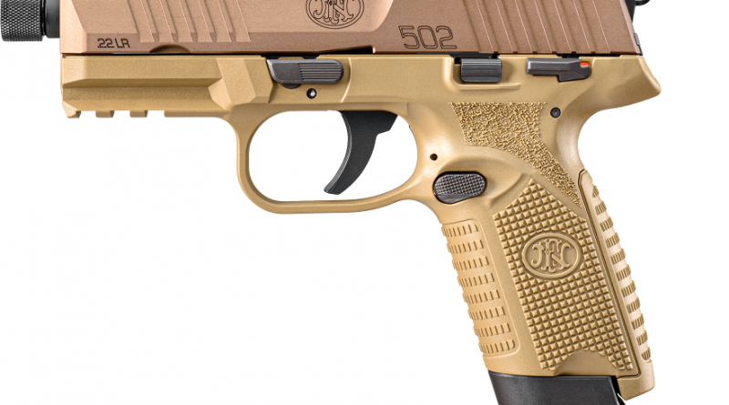 Az amerikai FN újdonsága az FN509-es szolgálati nagykaliberű pisztolyuk gyakorlófegyverének szánt FN502 Tactical .22 Lonf Rifle lőszeres kiskaliberű öntöltő pisztoly. Persze a peremgyújtású lőszeres fegyver csak alumíniumszánt kapott, szabad tömegzáras és merev csöves, de a fogása ugyanolyan, még az FN509 pisztolytáskákba is passzol. Egy jelentős különbség adódik azért, míg a nagykaliberű modell strikeres elsütőszerkezetű, addig a .22-es külsőkakasos, csak single action elsütőszerkezettel és manuális, kétkezes tokbiztosítóval.