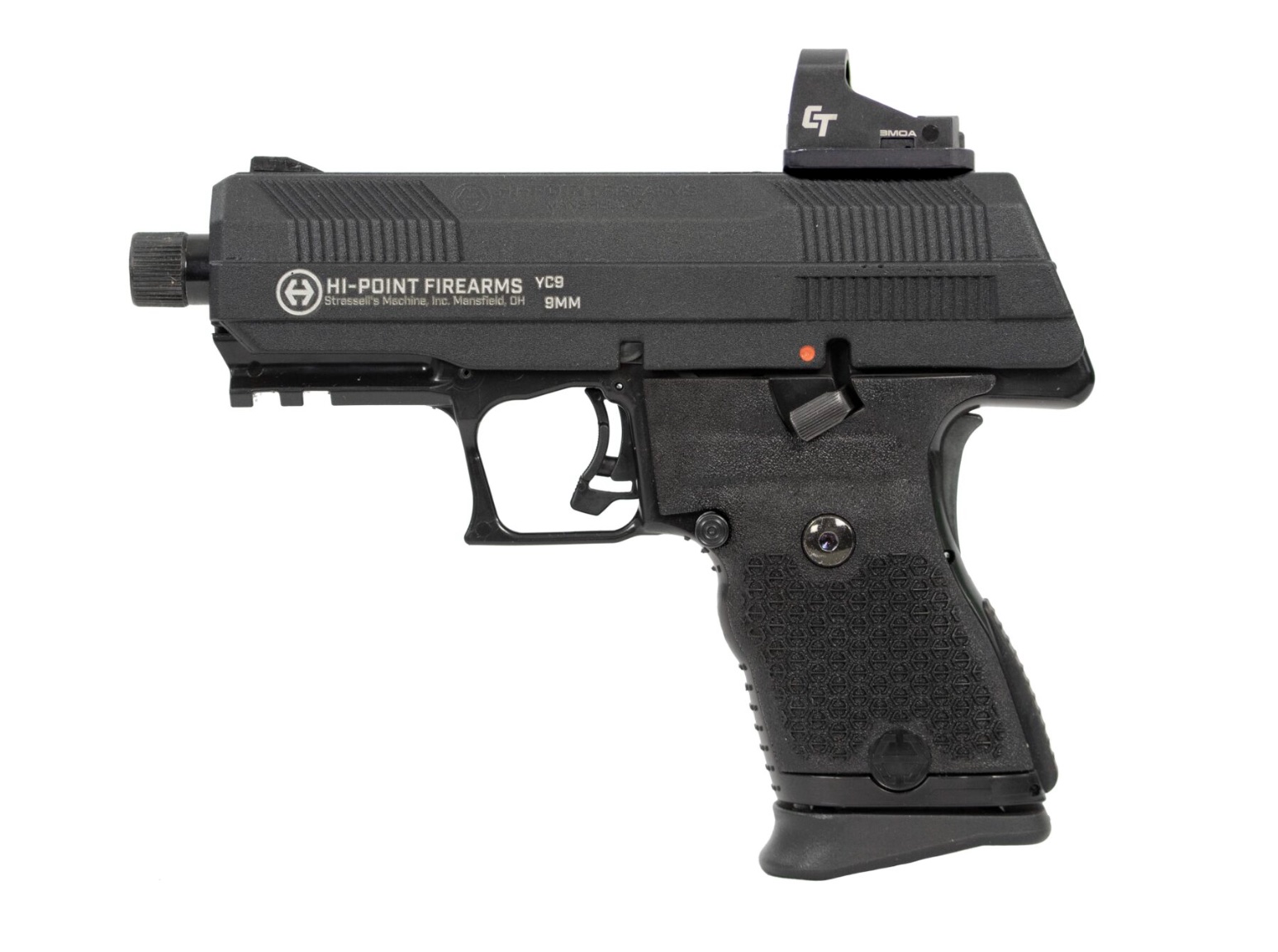 Az YC9 9 mm Luger kaliberű, merev csöves, szabad tömegzáras, tégla méretű acélbetétes spiáterszánnal (mint a többi Hi-Pointnál), csak single action strikeres sütéssel. Üres tömege nem kevesebb, mint 970 gramm a kompakt mérete ellenére. A pisztoly kétsoros, 10-lőszeres tárat kapott, tokja szereléksínes, 4,12″ csövének végén menet van hangtompítónak, szánján pedig red dot előkészítés – úgy vélik, hogy ezek közül bármit felszerelve duplázódik a fegyver ára automatikusan:-)).