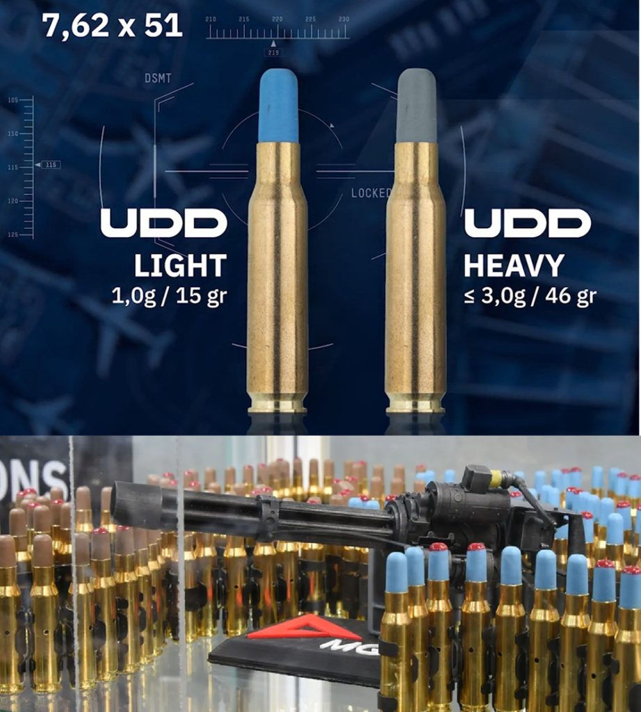 – UDD-Light (kék lövedék) a könnyű, mindössze 1,0 grammos lövedékkel, 1300 m/s torkolati sebességgel és 120 méteres hatásos lőtávolsággal kisebb drónok ellen, 500 méteres veszélyzónával.