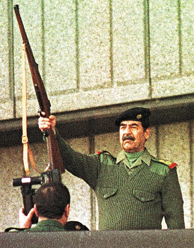 (Mint ismeretes, Szaddamnál elfogásakor egy Glock 18-as volt, melyet G. W. Bush elnök kapott meg, de mivel jogszerűen nem birtokolhatja a sorozatlövő fegyvert hivatali ideje után, az az elnöki múzeumába került.)