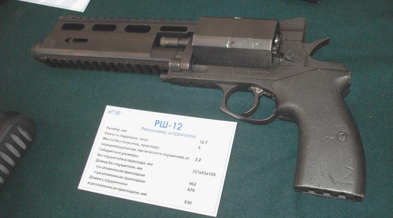 Az oroszok megirigyelték az .500 SW Magnum és a Chiappa Rhino revolverek sikerét? Az új RS-12 jelzésű revolverük ugyanis alsó töltényűrből tüzel, ésa nehéz mesterlövész karabélyokból lőtt 12,7×55 mm-es lőszert tüzeli.