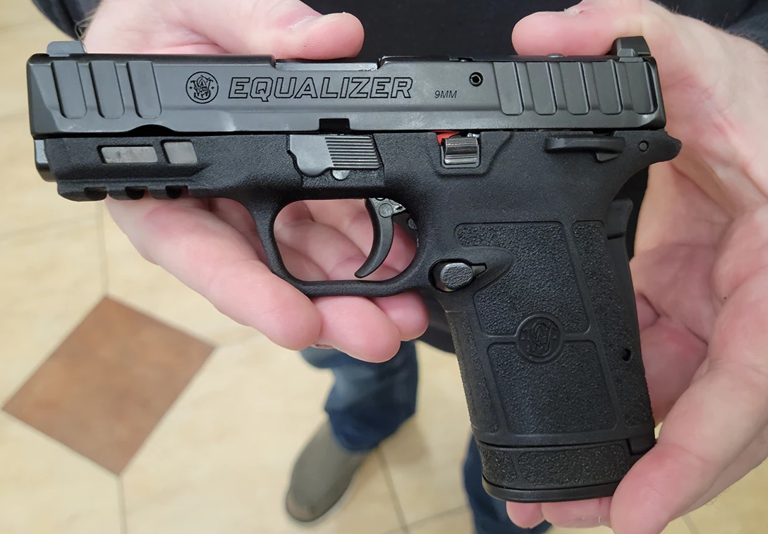 A Smith and Wesson újabb önvédelmi jellegű lapos, műanyagtokos pisztolyt mutatott be, MP Equalizer néven. Ez amúgy az MP Shield EZ családra épül, vagyis belsőkakasos, csak single action elsütőszerkezettel, ahol a könnyű sütést markolatbiztosítóval párosítják. A szánforma meg egy korábbi, már nem gyártott típusról származik, de a könnyebb felhúzhatóság érdekében hátul fogantyúszerűen kissé kiszélesedik. A szánt ellátták red dot előkészítéssel is.