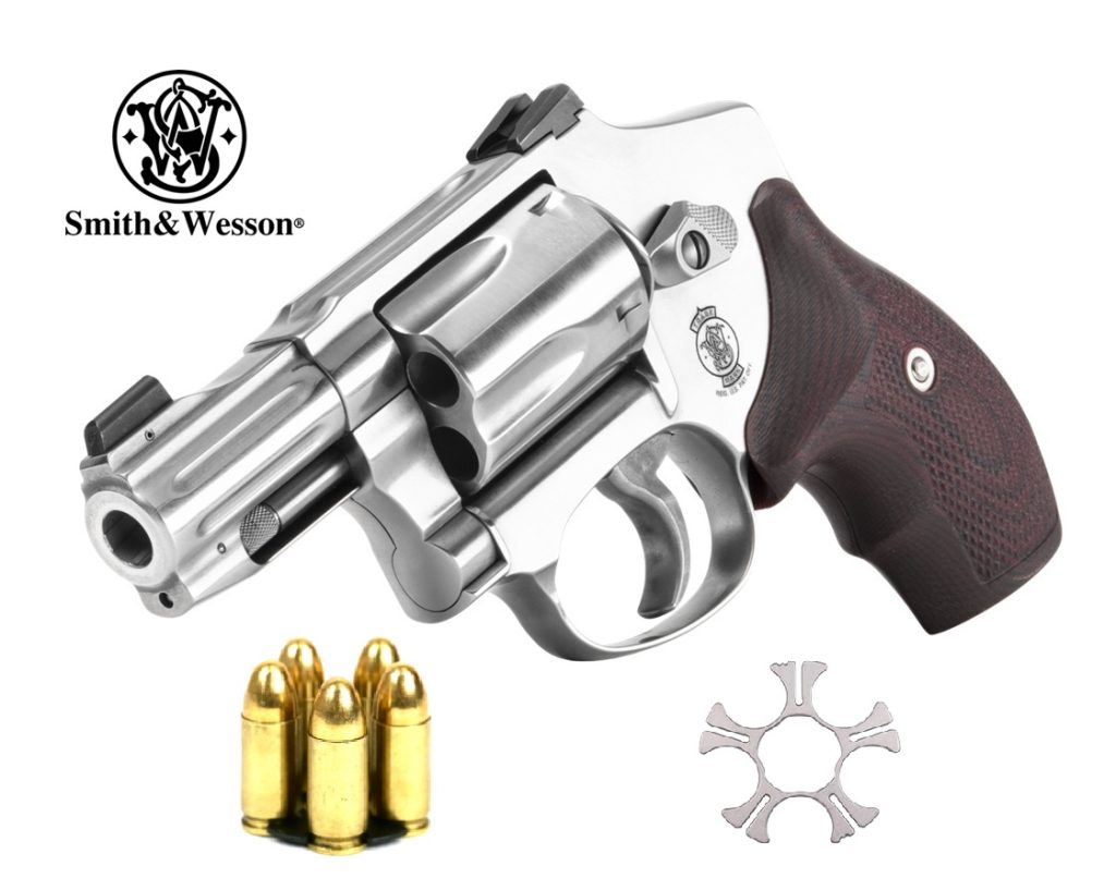 A revolver Centennial J-frame, azaz teljesen zárt tokszerkezetű, belsőkakasos, DAO elsütőszerkezettel. Fontos, hogy nincsen rajta már Clinton-féle ostoba gyerekzár. A revolverre nagyméretű, jól látható, cserélhető nézőke és célgömb került, a markolat pedig VZ Grips-féle, G10-anyagú. A csövön levő könnyítő bemarások viszont csak optikai tunningok. A revolver ára 999 dollár az USA-ban (MSRP).