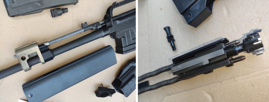 A valóságban viszont nem történik más, mint Putyin esetében: elzárjuk a gázcsapot. Hiszen a fegyver egy gázelvételes, short stroke gázdugattyúutas, forgózárfejes (AR-18 jellegű) öntöltő, amiben az öntöltés kiiktatható és akkor a zárszerkezetet kézzel mozgatjuk hátrafele.