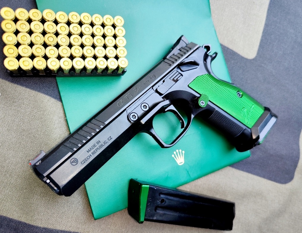SzuperZÖLD! Azaz a CZ IPSC Standard kategóriás sportpisztolyának második generációja született meg pár évvel ezelőtt, ebből az alapmodell feletti, GREEN azaz zöld változatot próbálhattuk ki. (A sorrend: Silver, Green, Bronze, az utóbbi alapértelmezésben szánakasztómentesen.)