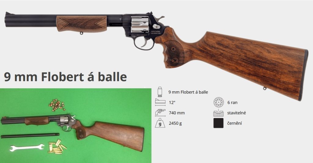 A cseh Alfaproj újdonsága – szigorúan a cseh belpiacra – az Alfa Model 9912 revolverpuska, mely a 9 mm Flobert lövedékes és sörétes töltényt illetve lőszert is képes tüzelni, hiszen 12″-es csőbetétje cserélhető (huzagolt vagy sima cső, nyilván az utóbbi a sörétlövéshez). A revolver teljesen acélból készült, az Alfa-Steel típuscsaládba tartozik, gyengítés és lefúvónyílások nincsenek a fegyveren, torkolati energiája üzemanyagtól függően 50-100 joule közötti. A hatlövetű revolverpuska a Cseh Köztársaságban C-1, azaz bejelentéshez kötött kategória, nem engedélyköteles.