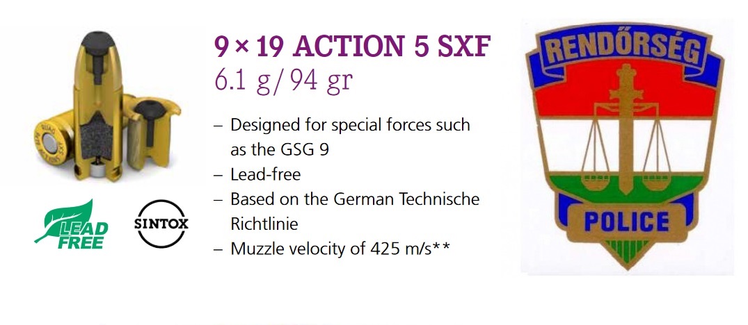 “A Terrorelhárítási Központnál rendszeresített 9×19 mm űrméretű RUAG Action5 SFX lőszer a BM/3019-3/2021. számú belügyminiszteri alkalmazásba vételi határozattal került a Rendőrség részére is rendszeresítésre.