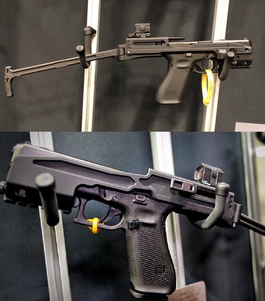 A svájci B+T rendvédelemnek szán USW válltámaszos-red dotos pisztolyához hasonló, már meglévő pisztolyt átalakító szettet SIG P320-hoz már bemutattak, idén pedig a Glock 17 (Gen5-höz is)-hez passzoló egységet jelentettek meg. Ez egy alumínium keret a szán és elöl a tok körül, melynek elülső részén szereléksínt képeztek ki fegyverlámpa/lézer számára, hátul pedig zárt. A benne mozgó szánhoz jobb/balkezes átszerelhető és kihajtható felhúzókar és persze micro red dot irányzék is tartozik. A hátuljához pedig behajtható válltámasz csatlakozik. Ára 499 dollár lesz az USA-ban.