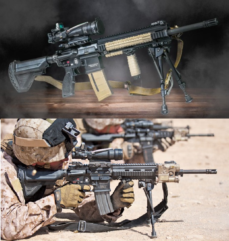 Most a Heckler und Koch bejelentette, hogy a tengerészgyalogság fegyverével külsőleg és műszakilag teljesen azonos, de persze csak félautomata kivitelt dob piacra, limitált mennyiségben. Az új MR27-esek közül 500 db ” csupasz” fegyver lesz 4399 dollárért, 500 darab pedig teljesen felszerelt “deployment kit” (bevetési készlet) lesz, mely kemény műanyag hordkoffert, ACOG irányzékot RMR-rel (red dot), Harris bipodot, hordszíjat, és szereléksín-burkolatot is tartalmaz. De ez már 9499 dollár lesz.