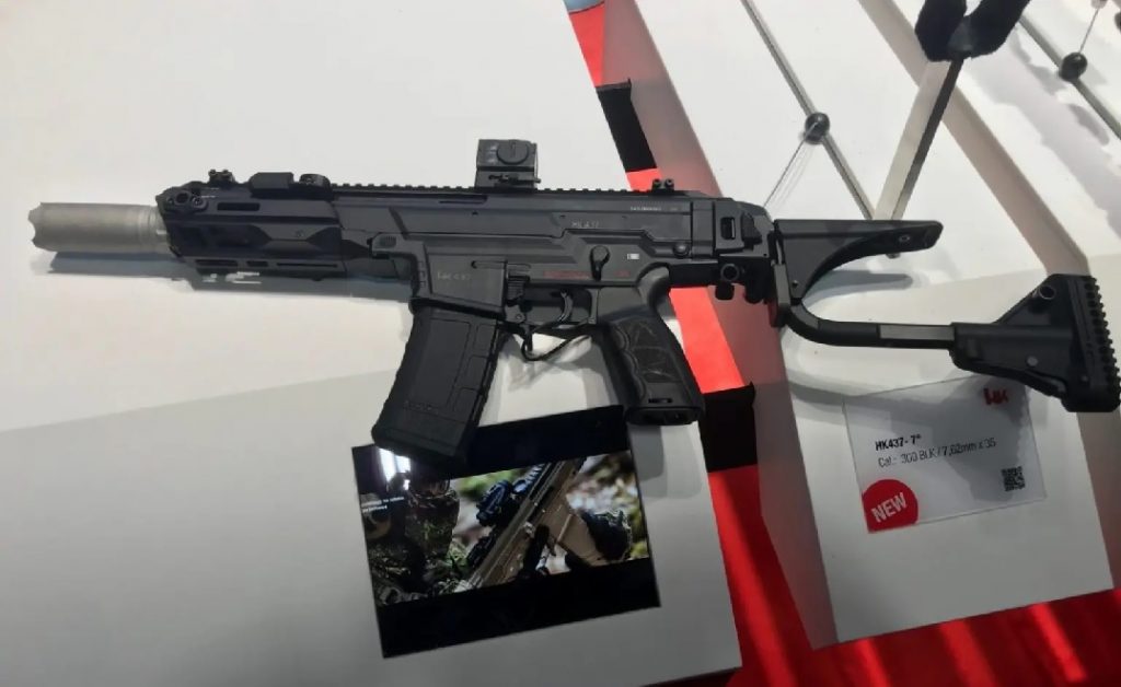A német Soldat und Technik adott hírt róla, hogy az Eurosatory kiállítások a Heckler und Koch bemutatta azt a gépkarabélyt, melyet a legendás MP5SD géppisztoly utódjának szánnak. A HK433 család tagjaként megszületett új HK437 7″ integrált hangtompítós kivitele .300 BLK kaliberű, módosított előágya a 7″ cső után félig elrejtve hordozza a Rotex hangtompítót, és a kisebb nyomású szubszonikus lőszerekkel való működés érdekében a gázrendszert is hátrébb hozták a fegyvercsövön. A gépakarabély alutokos, short-stroke gázdugattyús, forgózárfejes rendszerű. A kiállított darabon kifejezetten a SWAT-csoportok igényeinek megfelelően kialakított, az arcvédő lövedékállú sisakpajzs mellett is használható válltámasz került felszerelésre.