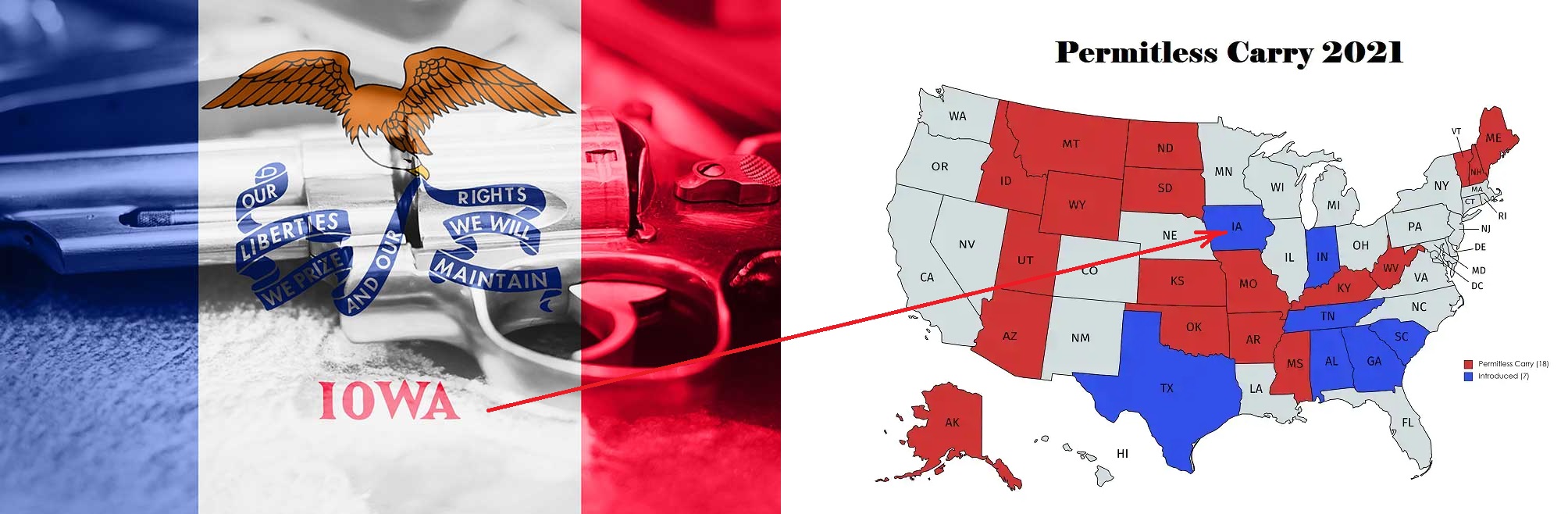 Iowa állam lakossága mindössze 3,15 millió fő, de itt eddig a rövid lőfegyver megszerzéséhez is kellett engedély (mely egyben viselésre is jogosított automatikusan), ezentúl elég a 4473-as nyomtatvány és a szövetségi NICS előéletellenőrzés a fegyverboltban.