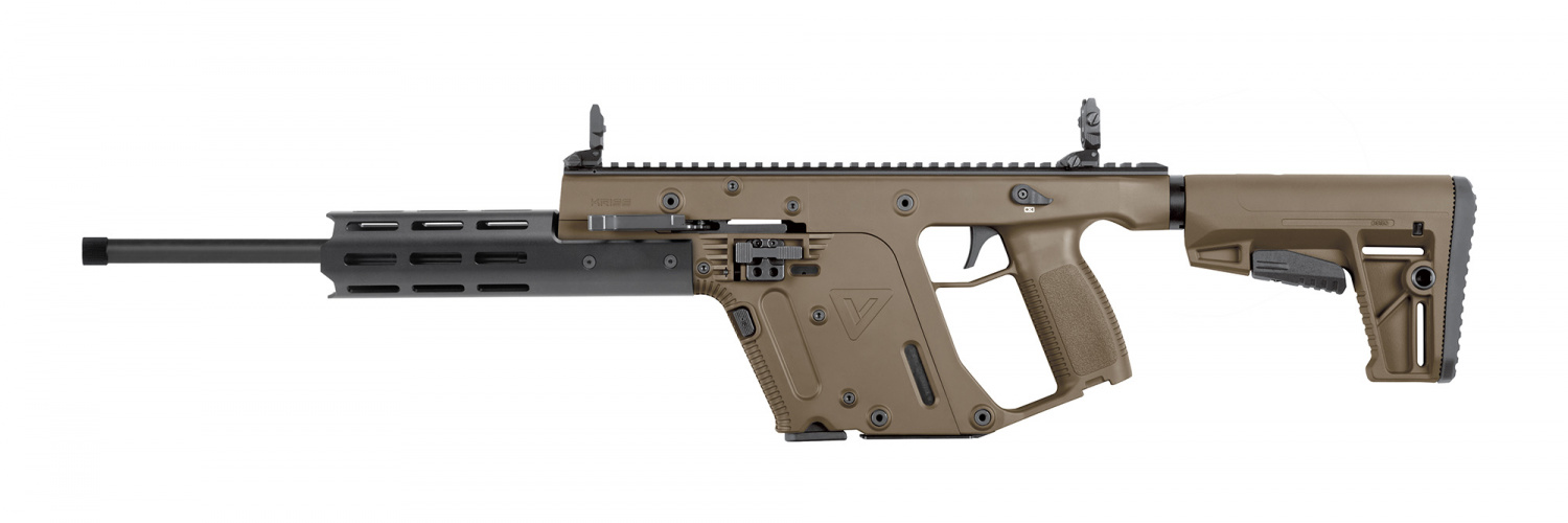 Az amerikai Kriss Vector öntöltő karabélyainak/pisztolyainak az volt a nagy mutatványa, hogy az ívesen lefele mozgó zárszerkezet és a válltámaszvonal alatti csőtengely okán kioltották a hátrarúgás felfele csavaró vektorát. Ennek ugyan pont egy .22 LR kiskaliberű fegyver esetén nincs sok értelme, így a zárszerkezet az idei újdonságukban sima, lineáris mozgású szabad tömegzár lett, de a szuperdögös (számítógépes játékokból, akciófilmekből ismert) külső forma megmaradt, az ár pedig csupán 649 dollár az USA-ban. A fegyverbe 10 vagy 20-lőszeres műanyagtestű tárakat lehet tölteni és többféle színben is elérhető.