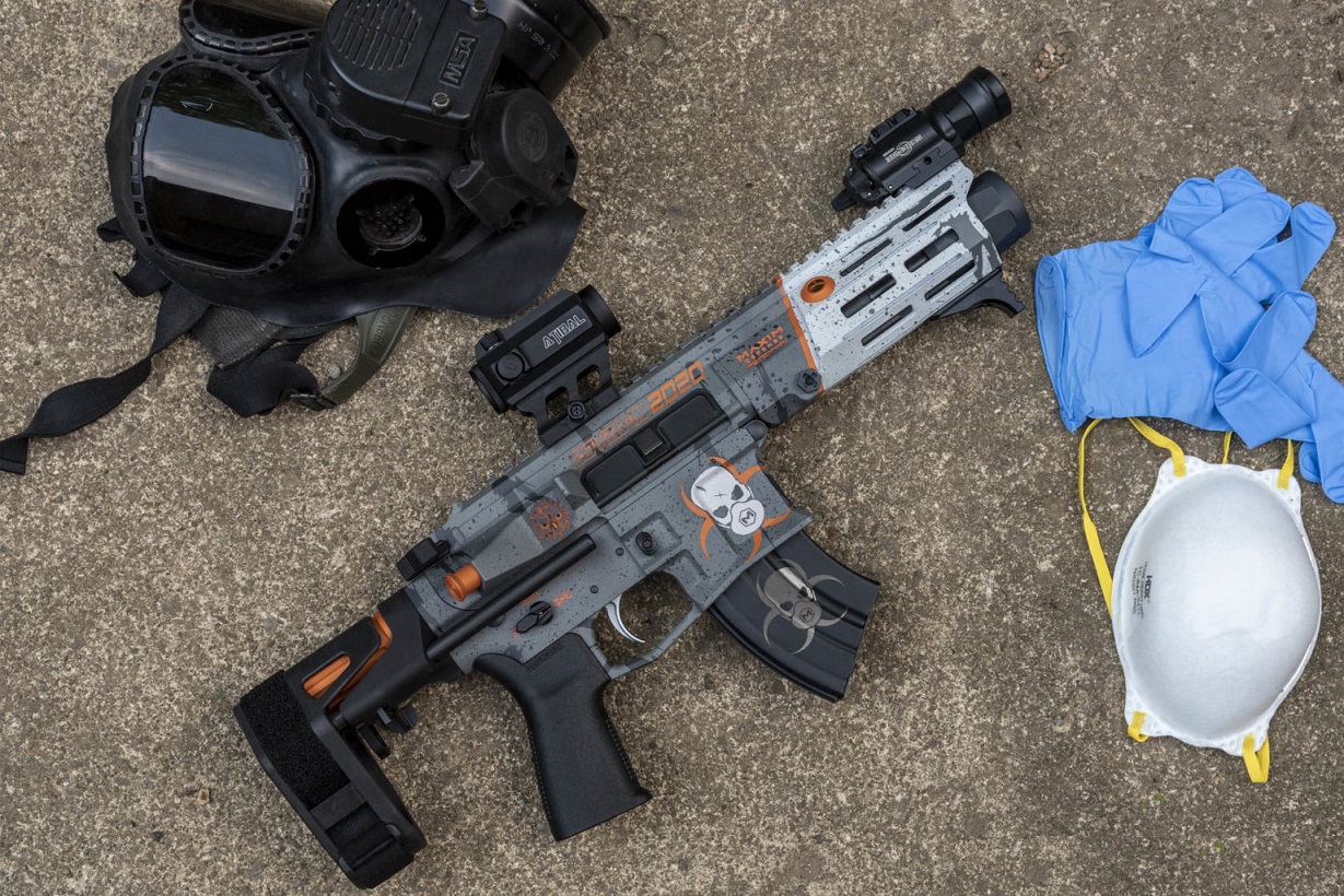 A vírusmarketing új módszereihez sorolható (és még szóvicc is) az amerikai Maxim Defense és a John’s Sport Center (Pittsburg, Kansas) együttműködéséből megszületett kompakt pisztoly/PDW 7,62×39 mm kaliberben. A betolható kartámaszos AR-15-alapú fegyver maszkos halálfejet, narancssárga biohazard jelzést is kapott, dobozában pedig arcmaszk, védőkesztyűk és gázmaszk is helyet kapott. Csőhossza 5,5″, felületkezelése többszínű cerakote. A fegyverből csupán 100 db készül, ára 3500 dollár az USA-ban.