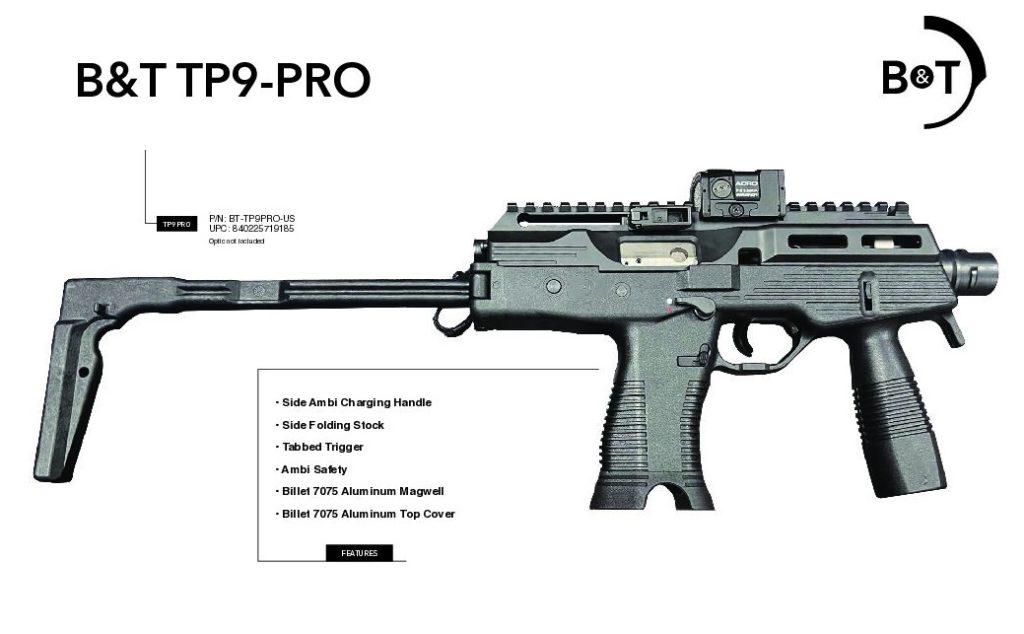 A svájci B+T újabb változatát hozta ki a TP9 (Tactical Pistol 9 mm Luger) PDW-fegyvernek, TP9-Pro jelzéssel. Az egykor Steyr TPP/SPP modellként indult forgócsöves reteszelésű, műanyagtokos eszköz lassan a fejlesztésének harmadik évtizedébe lép.